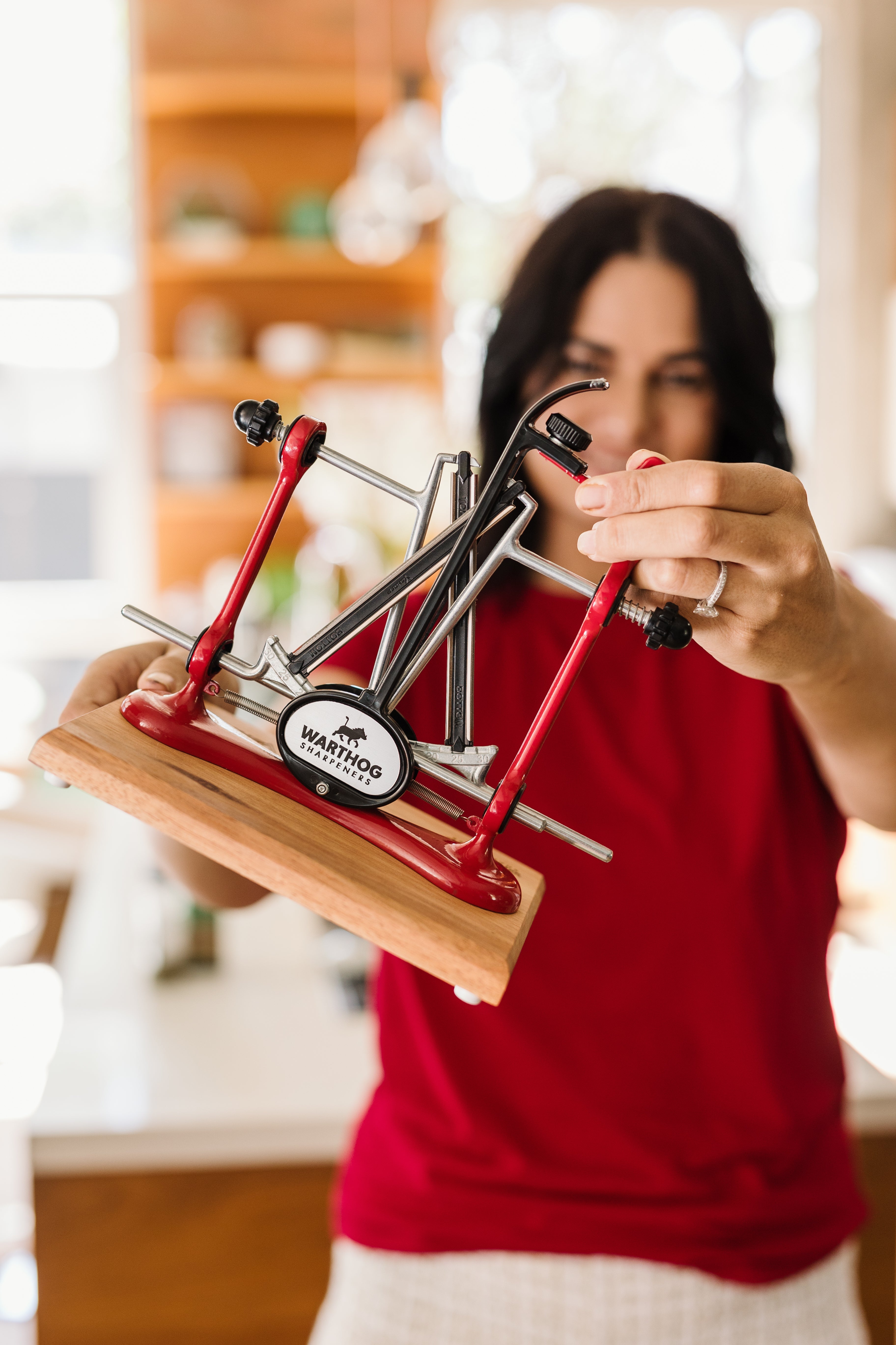 Warthog Blade Sharpeners developed the V-Sharp™ (now V-Sharp Classic™) in 2000 to offer a fast, easy, and professional-quality knife sharpening solution. Unlike traditional clamping systems, which are slow and cumbersome, the V-Sharp™ uses a unique design that ensures quick, precise sharpening while maintaining the correct angle for optimal results. With its patented diamond sharpening technology, the V-Sharp™ allows users to sharpen knives expertly at home, preserving the blade’s longevity and performance.